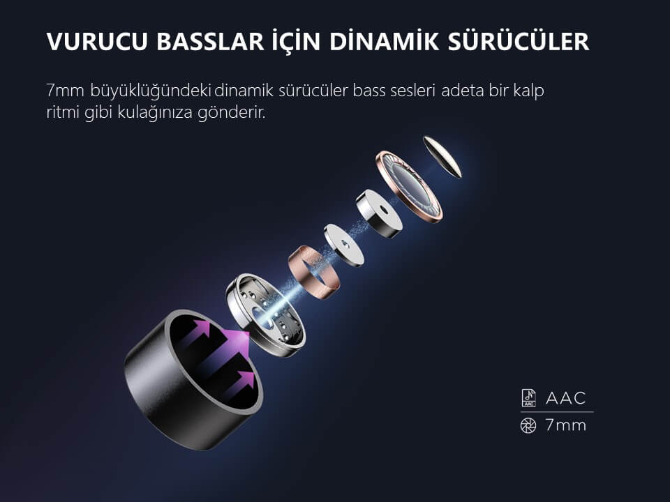 1More AirFree modelinin sunduğu özelliklere yakından bakacak olursak AirFree Bluetooth 5.0 teknolojisini kullanıyor ve bu sayede kayıpsız bir ses aktarımı sunuyor. 4 Adet ENC mikrofona sahip kulaklık segmentindeki rakiplerine oranla sesli görüşme konusunda çok daha başarılı bir performans sunuyor. 7mm büyüklüğündeki dinamik sürücülere sahip kulaklık yine bu seviyede pek görülmeyen bir Bass performansı sunuyor